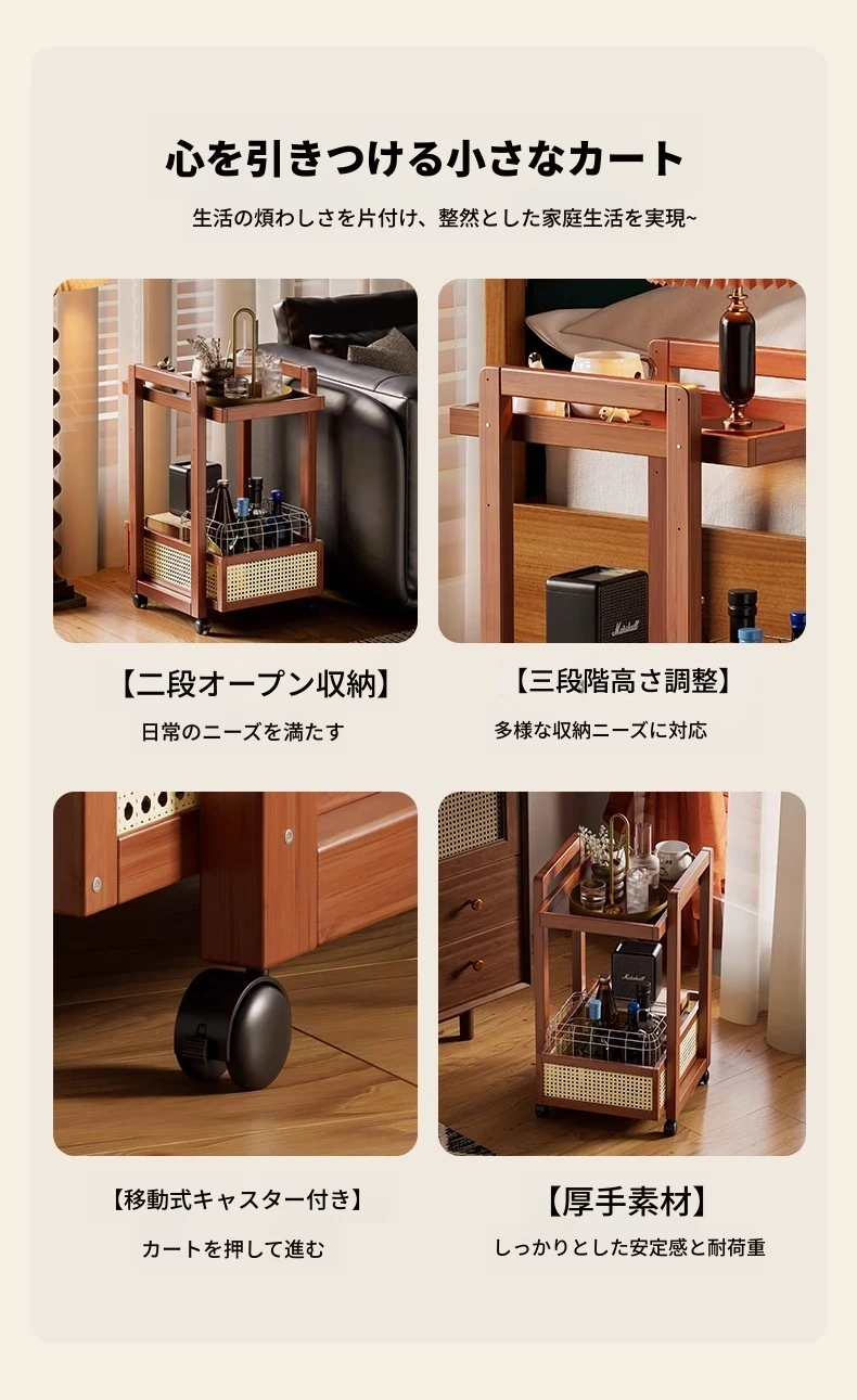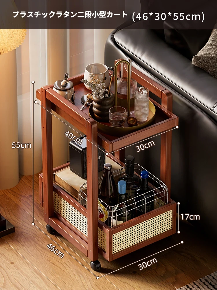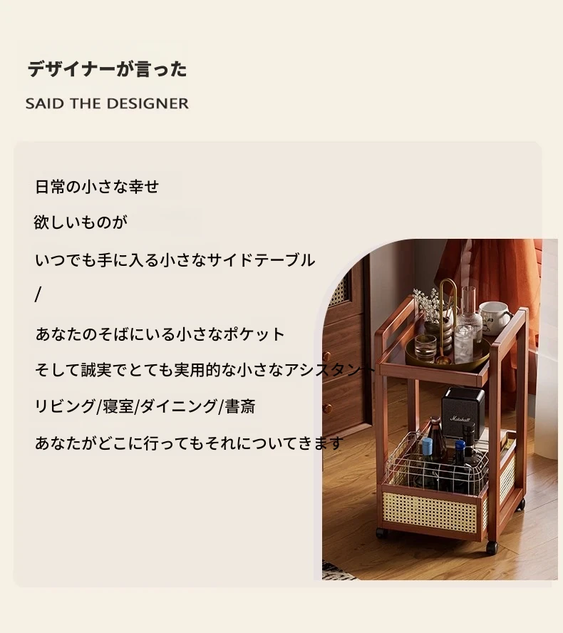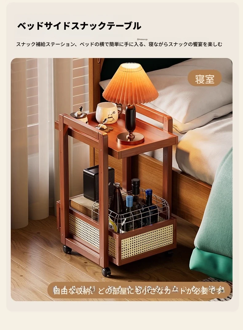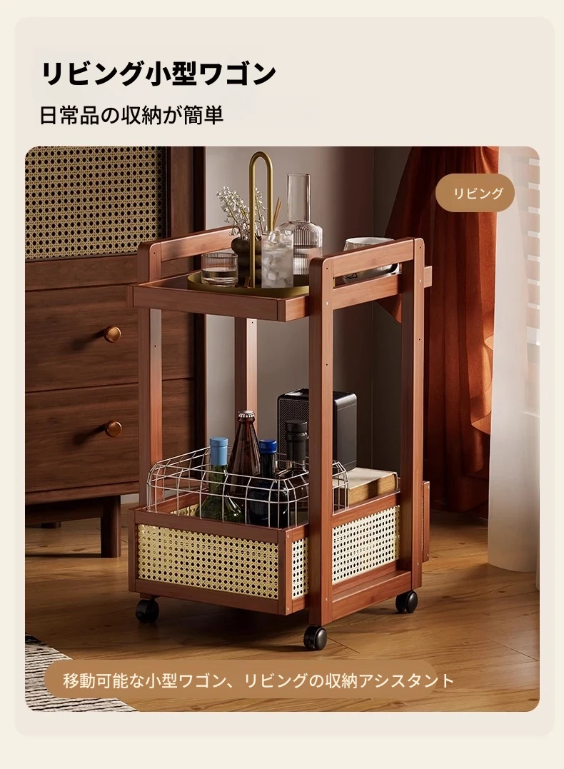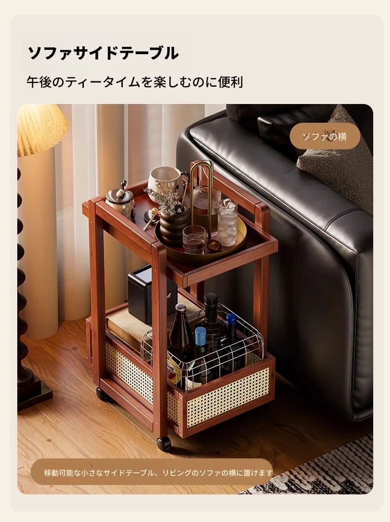 キャスター付きおしゃれなミニサイドテーブル - 家庭用リビングやダイニングにぴったり!収納力抜群で、移動もラクラク。スペースを有効活用できる便利な収納カート!