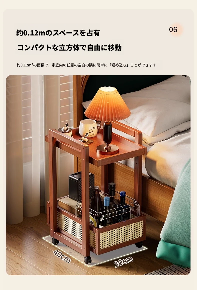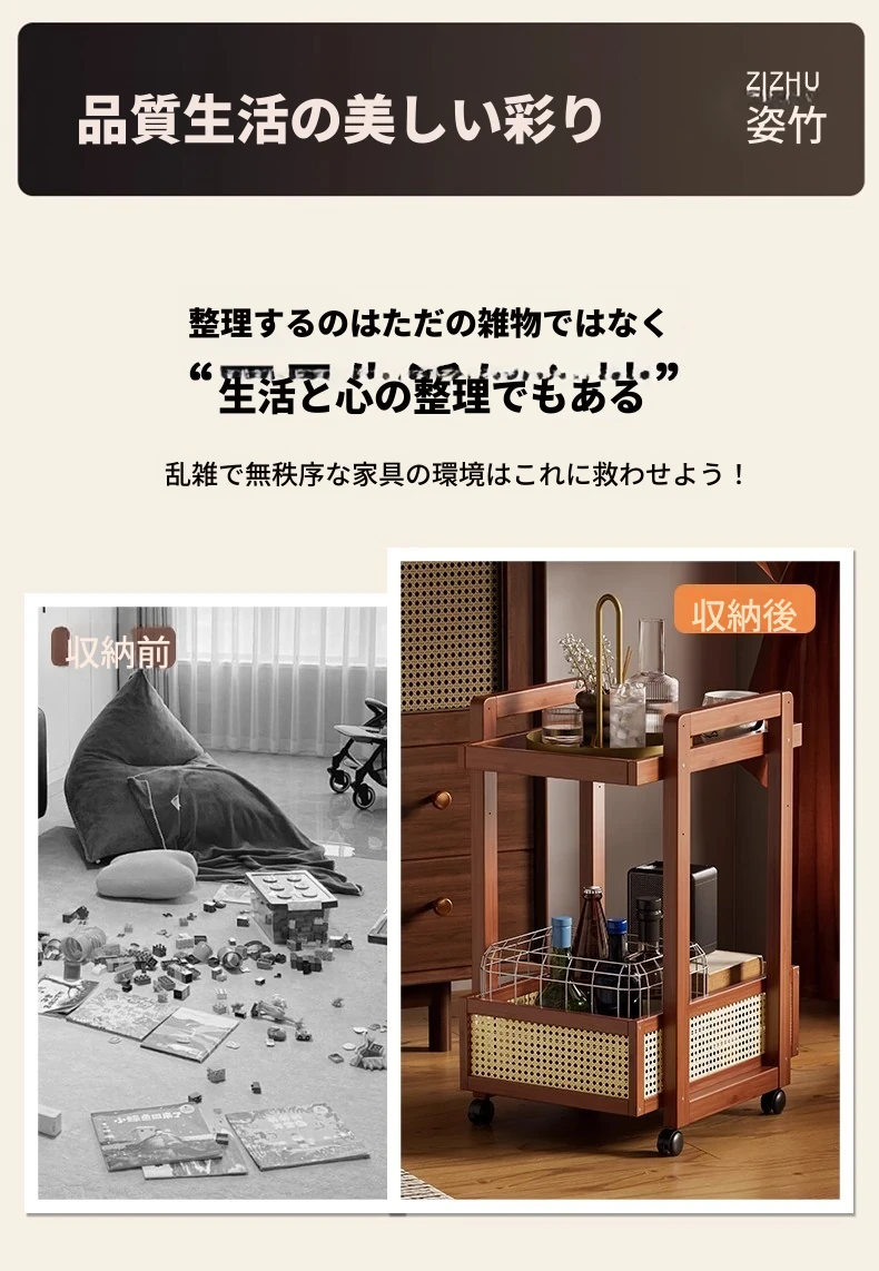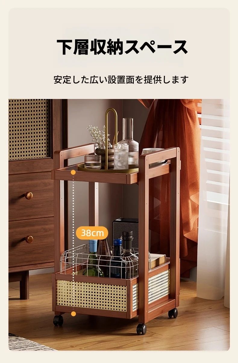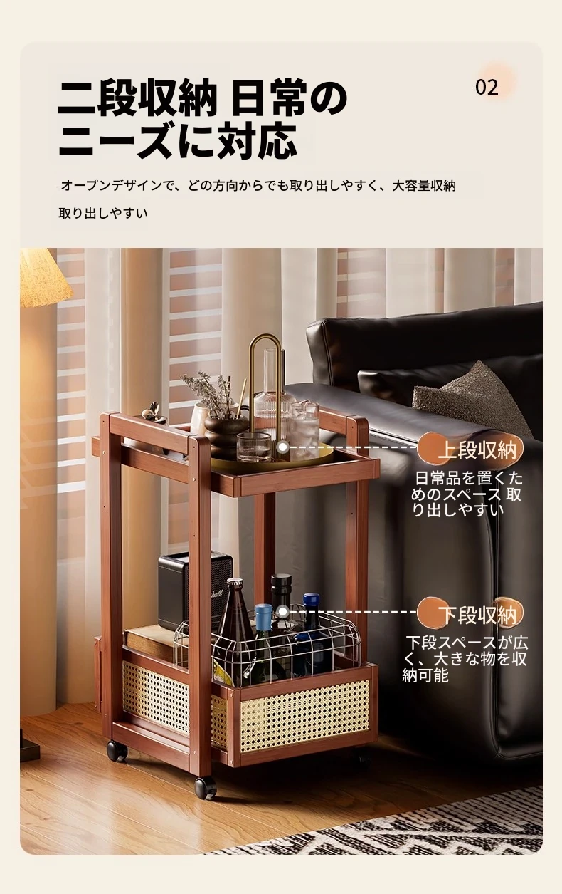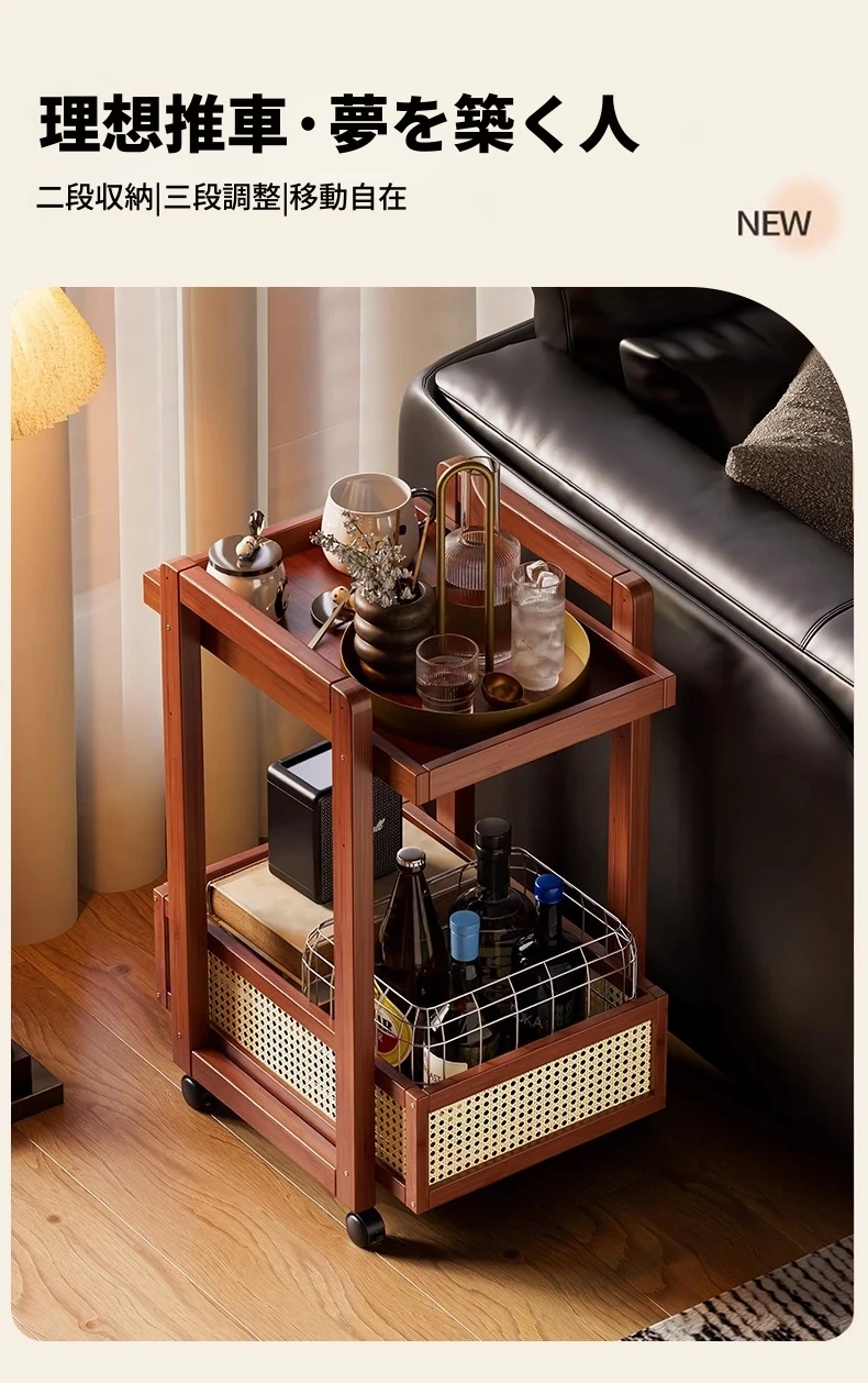 キャスター付きおしゃれなミニサイドテーブル - 家庭用リビングやダイニングにぴったり!収納力抜群で、移動もラクラク。スペースを有効活用できる便利な収納カート!