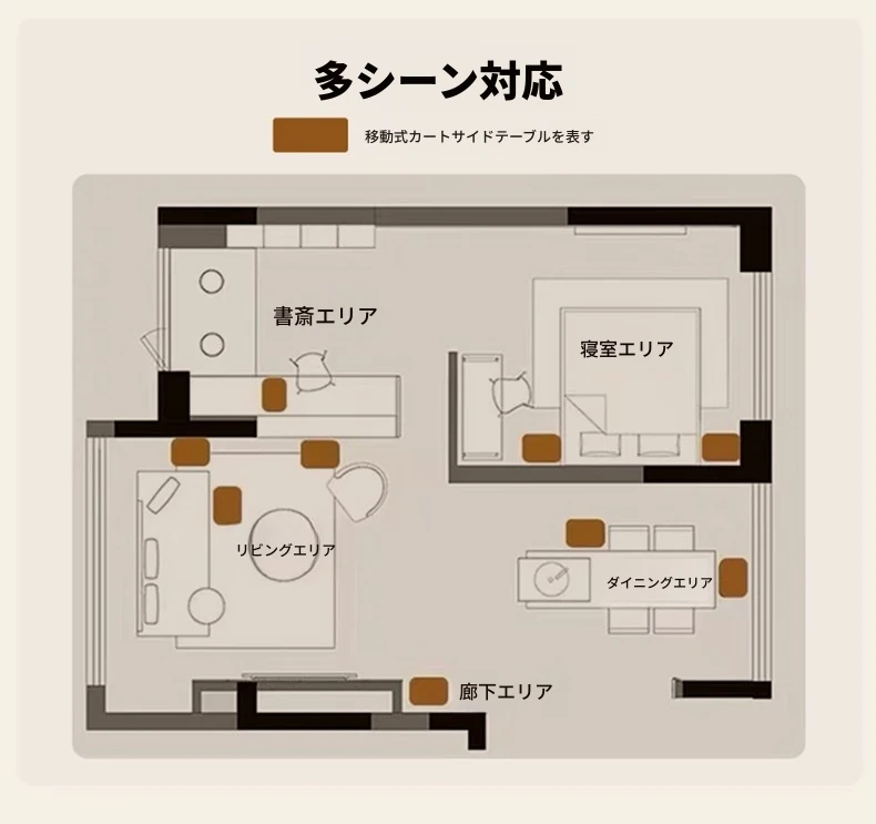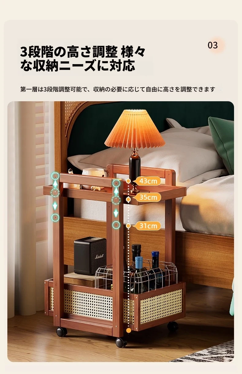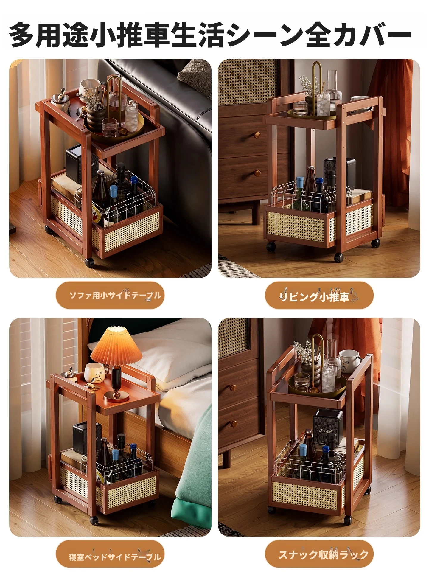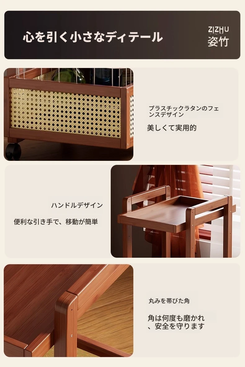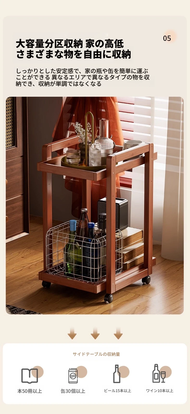 キャスター付きおしゃれなミニサイドテーブル - 家庭用リビングやダイニングにぴったり!収納力抜群で、移動もラクラク。スペースを有効活用できる便利な収納カート!