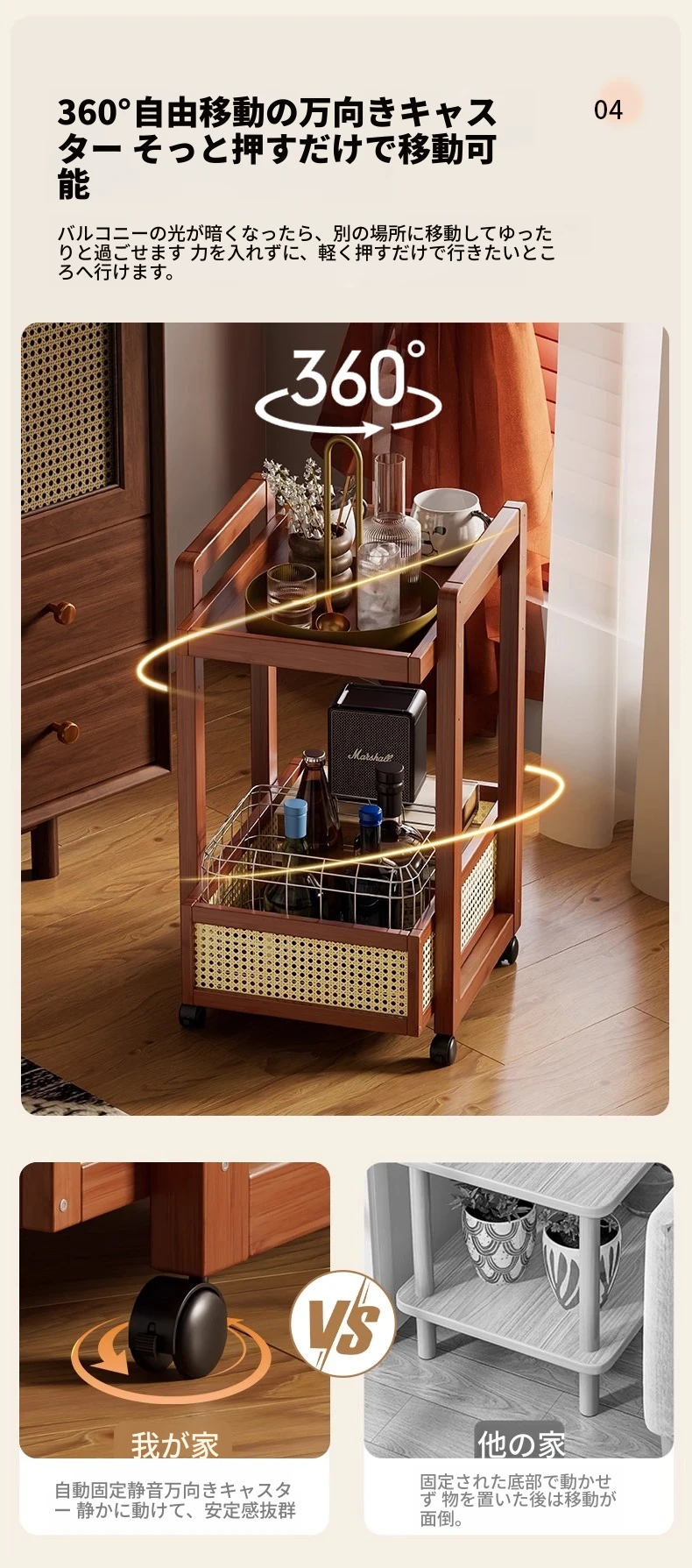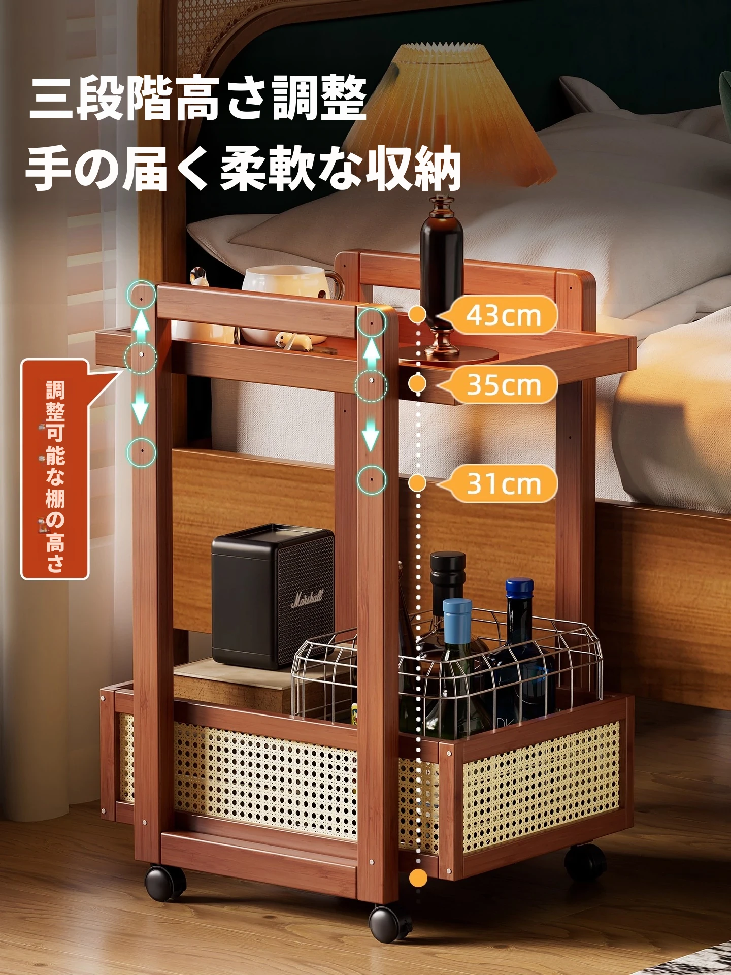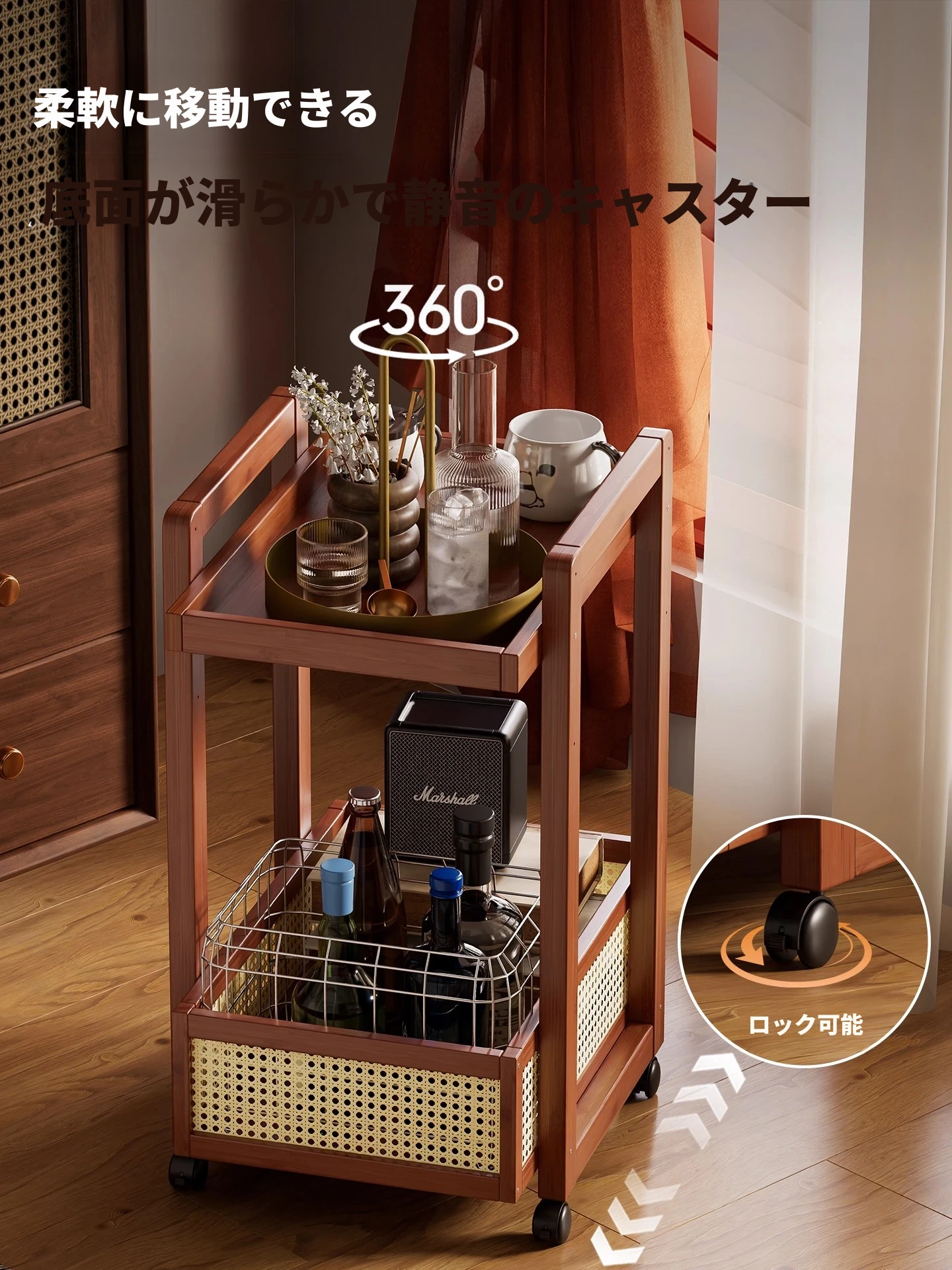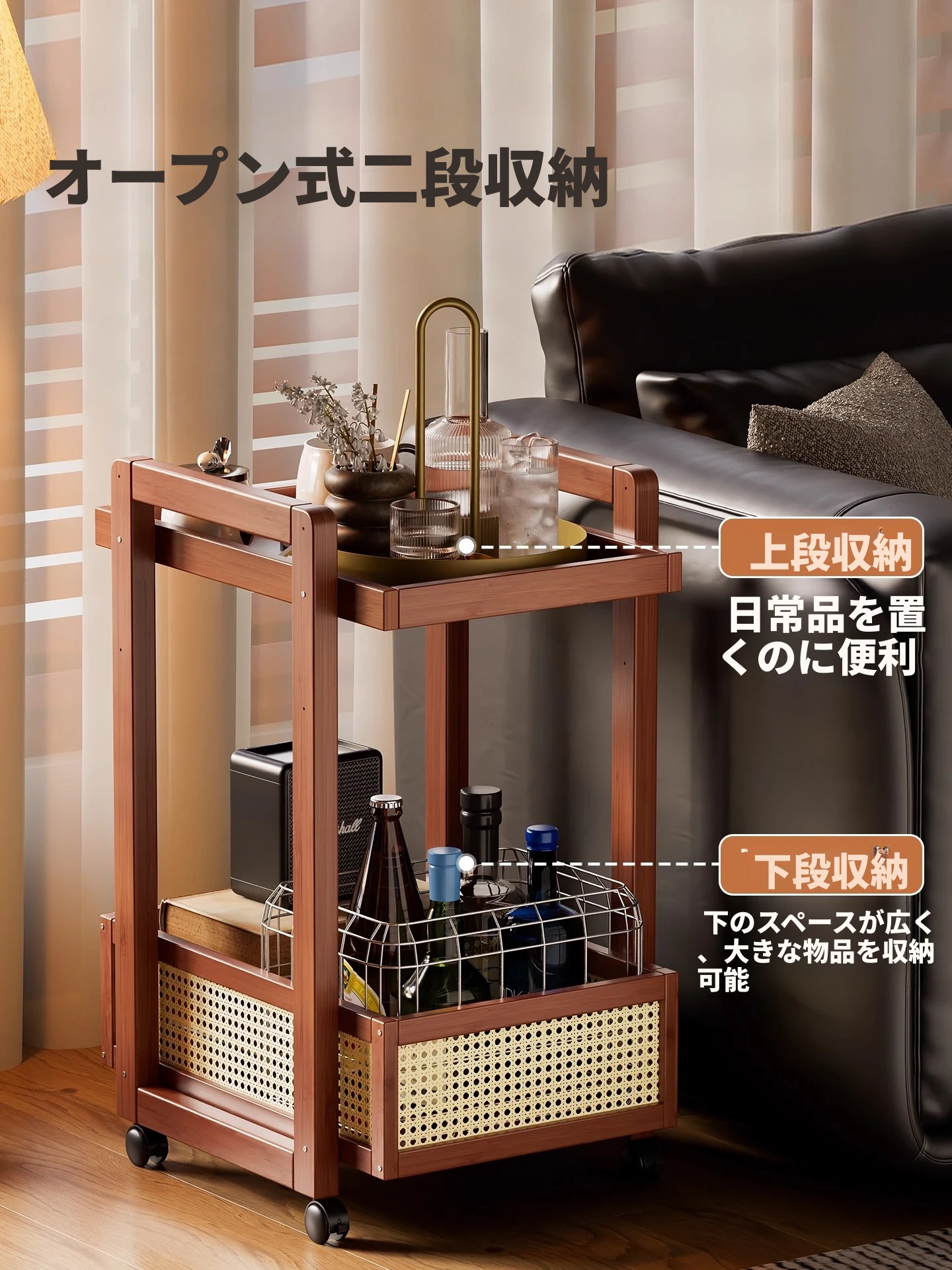 キャスター付きおしゃれなミニサイドテーブル - 家庭用リビングやダイニングにぴったり!収納力抜群で、移動もラクラク。スペースを有効活用できる便利な収納カート!